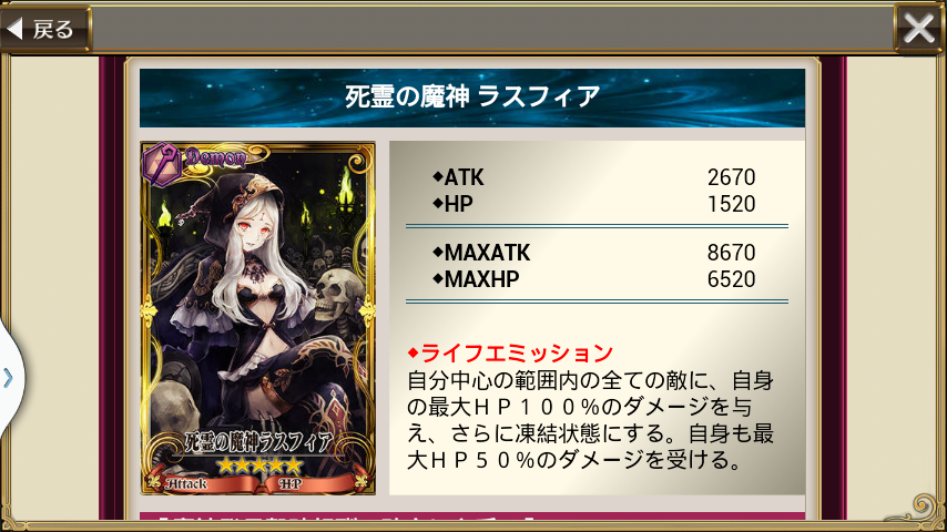 給予自身周圍的全體敵人自身最大HP的100%的傷害,並附加凍結。自己受到自身最大HP的50%的傷害。
