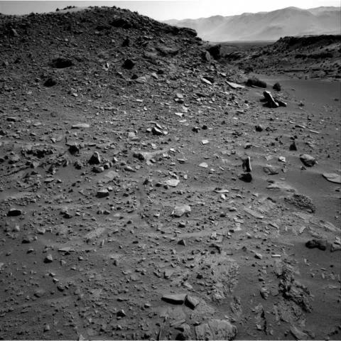 仔細搜尋好奇號拍攝的照片,每天都能發現奇怪的現象,像這兩張照片,乍看那塊石頭就是懸空的,底下還出現陰影,這是怎麼回事? 這兩張照片是好奇號火星探測車的右眼導航相機在第527個火星日( Sol527)拍到,詳細時間是2014年1月29日分別為16:08:16 UTC與16:08:48 UTC,來NASA加州理工學院噴射推進實驗室的網站看原始圖檔照片