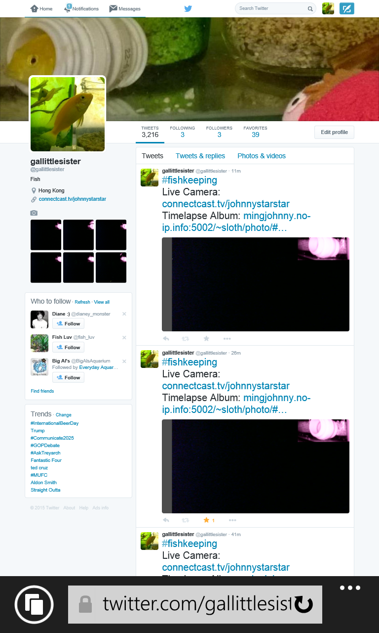 發表文章發起投票回覆魚樂無窮蝦條人電腦直播http://connectcast.tv/johnnystarstar電話直播http://m.connectcast.tv/johnnystarstarTwitter 硬照直播https://twitter.com/gallittlesister贊助網站 0 108/08/15 1:03 AM引用快速引用本貼文共有 10 個回覆蝦條人Twitter 係自己寫左個screen cap程式,每15分鐘cap圖同tweet#108/08/15 1:06 AM引用快速引用蝦條人上ebay買左隻由大陸運落嚟嘅紅外線cam#208/08/15 1:07 AM引用快速引用蝦條人死左一條,得番兩條慎入https://na.cx/i/0CVHER.jpg#308/08/15 1:10 AM引用快速引用Reborn!!加油!#408/08/15 1:38 AM引用快速引用Kinder養銀翡翠啦屌呢排魚街有d平魚幾抵玩#508/08/15 1:42 AM引用快速引用砲大孫黨民國蝦條人 #608/08/15 11:18 AM引用快速引用蝦條人養銀翡翠啦屌呢排魚街有d平魚幾抵玩要啲點養都唔死先得我只得個cheap cheap 掛濾,一塊海棉 #708/08/15 11:39 AM引用快速引用蝦條人蝦條人 放心,我唔會攞我條蝦條去餵魚嘅#808/08/15 11:40 AM引用快速引用蝦條人早晨贊助網站#908/08/15 11:42 AM引用快速引用蝦條人 新玩具, J 緊個雪人#1008/08/15 8:44 PM引用快速引用發表回覆