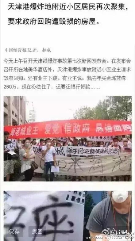 天津港爆炸;中產階級一夜成訪民;享受維穩對象待遇