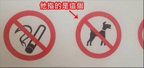 然後那個人指著牆上貼的一個標誌對我說,看見沒有