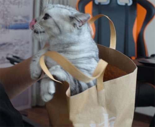 我要假裝貓是我不經意帶來的,於是我悄悄的走到工位上,把貓從貓包裡拿出來,然後放到另外一個袋子裡,然後很認真的大叫了一聲