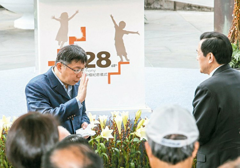 悼二二八68周年 柯文哲拒與馬英九握手