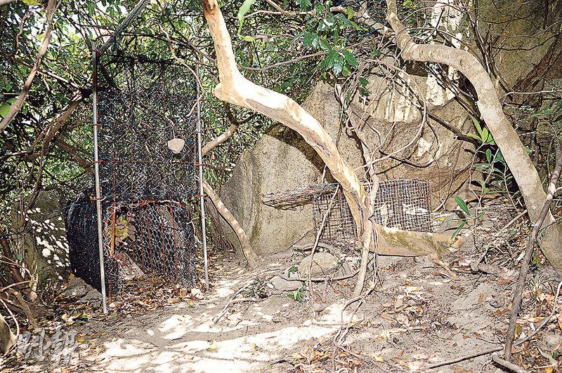 在現場發現的捕獸籠大小不一,部分由鐵線及燒烤叉製成,內裏放有麵包、雞髀及生肉等,其中一個大捕獸籠闊約1.2米,入口1米乘0.8米,足讓小童走入,籠中放有10個番薯,籠底埋在水泥固定於地面,相信是用作捕捉野豬。漁護署人員其後接報到場將捕獸籠全部檢走調查。