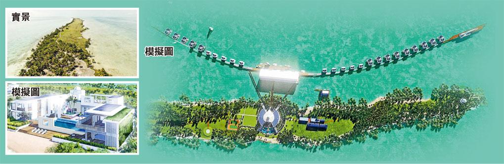 里安納度計劃將早年買下的小島改建環保生態度假村,盼藉此「改變世界」。圖為該度假村建成後的模擬圖。(網上圖片)