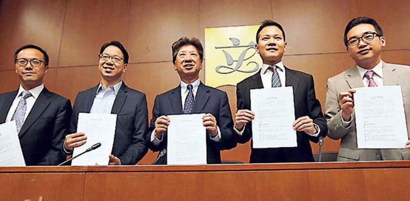 公民黨兩名議員郭榮鏗(右二)及湯家驊(右三)月底訪京見李飛 。(明報資料圖片)