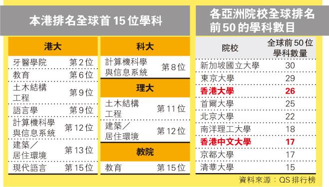 港大26科世界前50 亞洲第3