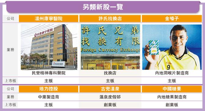 【明報專訊】這一輪升浪中,雖然資金游走不同市場板塊,但半新股走勢絕不亞於任何行業升幅,令市場「奇形怪狀」另類行業公司,也伺機湊熱鬧集資上市,當中包括內地溫州康寧精神醫院,以及本港隨處可見的許氏找換店等,同樣是今年上市之列。