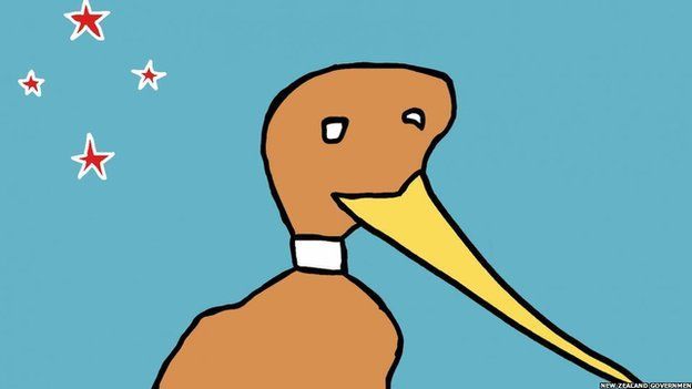 Davy Lee提交的圖案希望顯示新西蘭是一個由快樂,愛好和平的幾維鳥組成的國家。