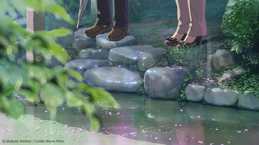在討論到新海誠作品的最大魅力時,毫無疑問地會提到他的電影畫面如何美麗,而在《言葉之庭》當中,下雨的主題似乎讓這點更為強化了。