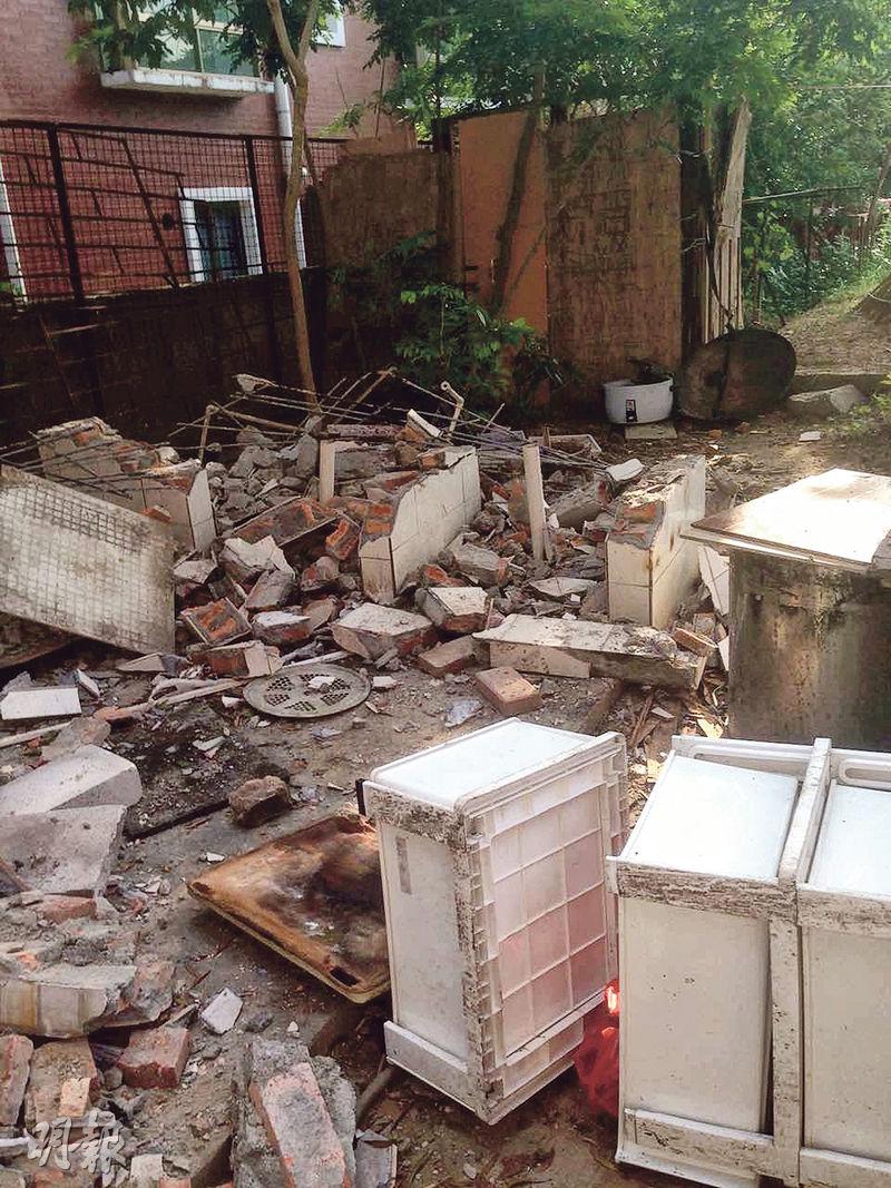 政府人員搗毁廚房,隨後查封,宣布解散關愛中心。(明報圖片)