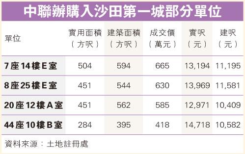 土地註冊處顯示至昨日為止,上月沙田第一城的買賣註冊中,[#f00c1b]就有4伙是由中聯辦旗下的新民置業有限公司[/#f00c1b](Newman Investment Company Limited)所購入,成交價介乎418萬至665萬元不等,成交日期均是於上月初至上月中。