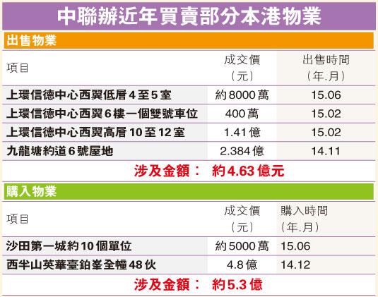 翻查資料顯示,中聯辦於過去一年先後多次在港買賣物業,除上述沙田第一城外,最大手購入之物業,要數去年12月向恒地(0012)主席李兆基以4.8億元,購入的西半山英華臺樓花盤鉑峯全幢48個單位,預料用作員工宿舍。