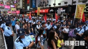 親中團體「愛港行動」今日下午於旺角行人專用區舉辦「7.11淨心論壇」,本土民主前線及熱血公民成員數十名亦有到場,大批警員在旺角行人專區佈防,逾百名軍裝及CID駐守;警方又以2層軍裝警員及一層鐵馬包圍愛港力成員,部份商戶決定關門以防萬一。