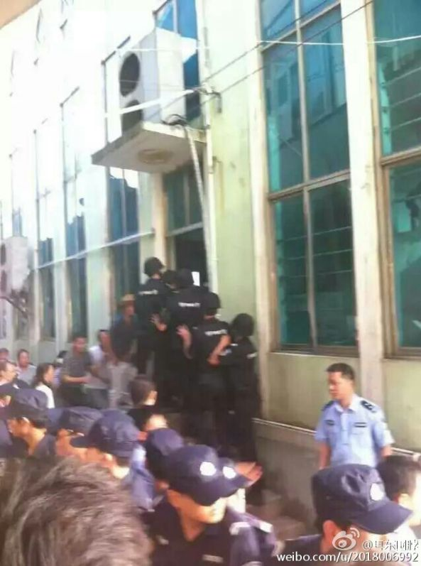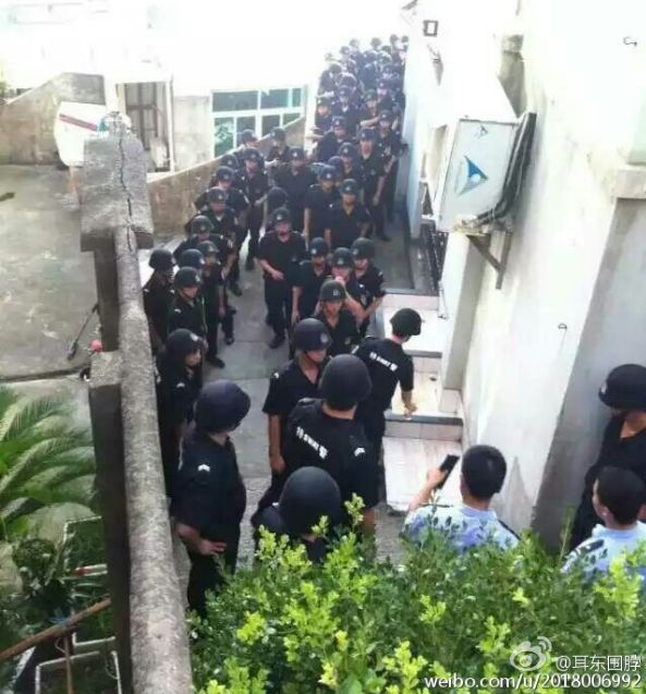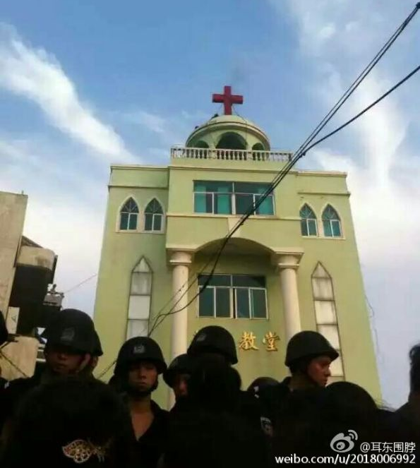 前日下午4點半,當局人員在試圖進入東海教堂被拒後,數百特警、武警包圍教堂,毆打抗議的教徒,強行撬門進入教堂,拆毁十字架。據信徒表示,當時教堂正在聚會,教徒們不願離去,結果遭暴力清場。