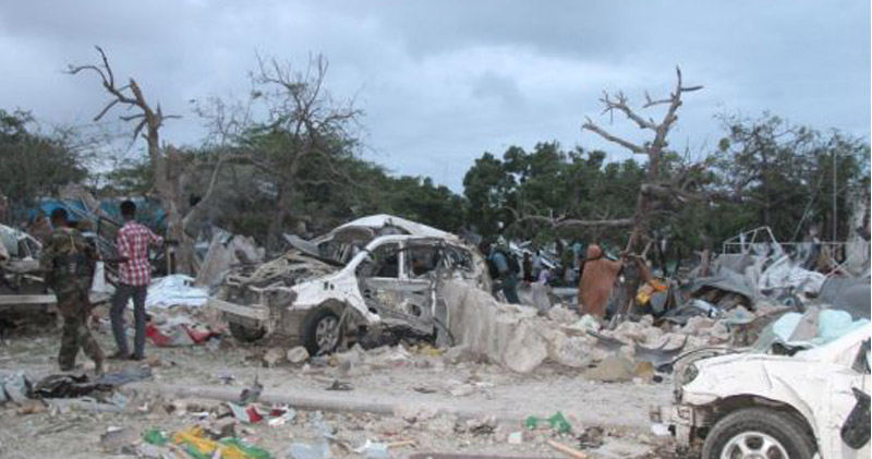 索馬里首都洒店自殺式炸彈襲擊現場。(新華社)