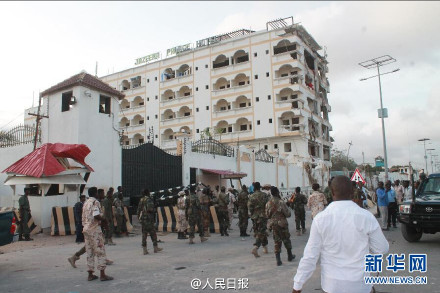 東非索馬里首都摩加迪沙一間高級洒店周日發生自殺式炸彈襲擊,造成至少15人喪生40多人受傷,內地傳媒稱經外交部核實確認,中國大使館1名武警罹難、3名武警受傷。