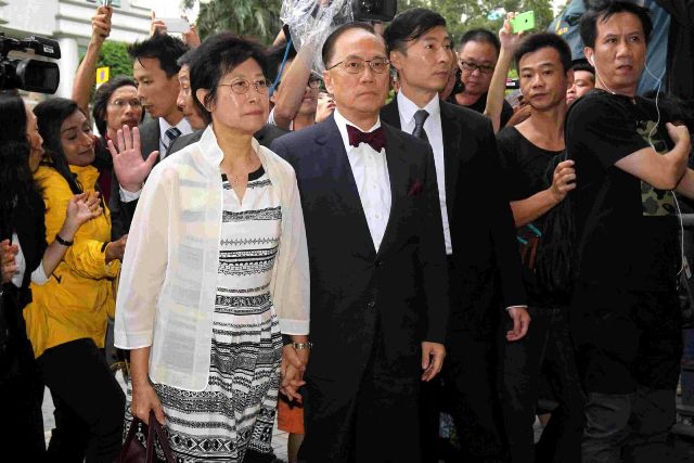 發表文章發起投票曾蔭權結棗紅色煲呔偕妻到達東區法院曾蔭權結棗紅色煲呔偕妻到達東區法院[/size=6][/b]前特首曾蔭權就及兩項公職人員行為失當罪出庭,他與太太曾鮑笑薇在保安人員重重包圍下,約於下午1時55分抵達東區裁判法院,準備2時半應訊。東區裁判法院門外,擠滿記者,現場水洩不通,結上棗紅色煲呔和袋巾的曾蔭權,沒有回應記者的提問便在保安人員護送下進入法庭。 022015/10/05, 2:38:46 下午本貼文共有 0 個回覆此貼文已鎖,將不接受回覆發表文章發起投票