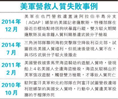 【明報專訊】美軍「三角洲」特種部隊聯同庫爾德族戰士,周四(22日)凌晨搗至伊拉克北部,本擬營救一批落在「伊斯蘭國」(ISIS)手裏的庫族人質。結果雖然成功救出近70名「瀕臨集體處決」的人質,可是情報跟現實有所出入,那些人質並非庫族戰士,而一名39歲美兵亦在槍戰中被殺,成為美軍軍事介入狙擊ISIS以來,首次有美兵陣亡。