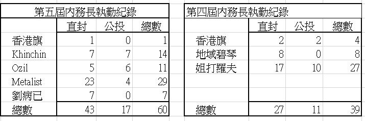 - 第五屆內務長團隊執勤次數最多. 直接封鎖類達43宗, 創歷史新高.