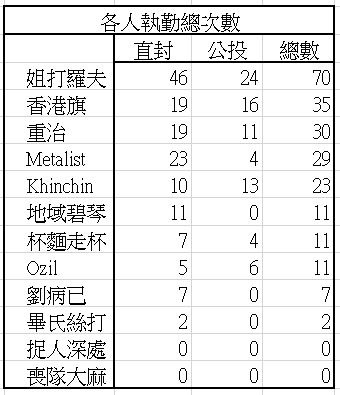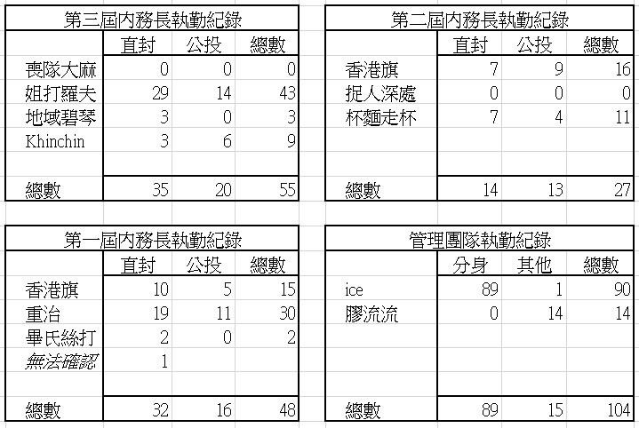 歷屆內務長執勤紀錄及其他監察數據[/size=5][/b]