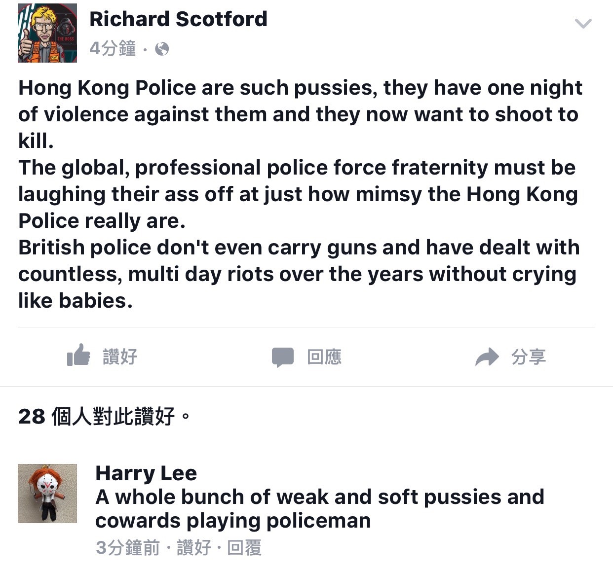 Hong Kong Police are such pussies, they have one night of violence against them and they now want to shoot to kill.