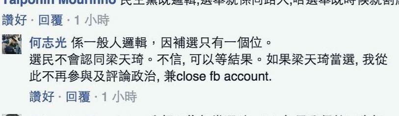 何志光:梁天琦當選,即刪FB,以後不參與政治!