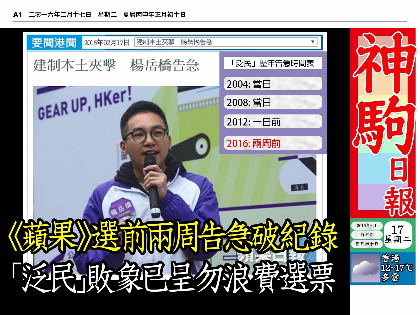 事實上,「泛民」打告急牌雖已變成常態,可是告急時間卻越推越前。新界東補選在2月28號才舉行,《蘋果》在今天已展開告急,與網媒「香港獨立媒體網」和「立場新聞」互相配合,全方位打擊對手選情。