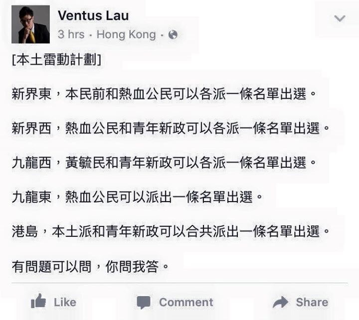 終於有人講真正目的 普羅熱血係搞本土雷動計劃 五區爭十席!!!