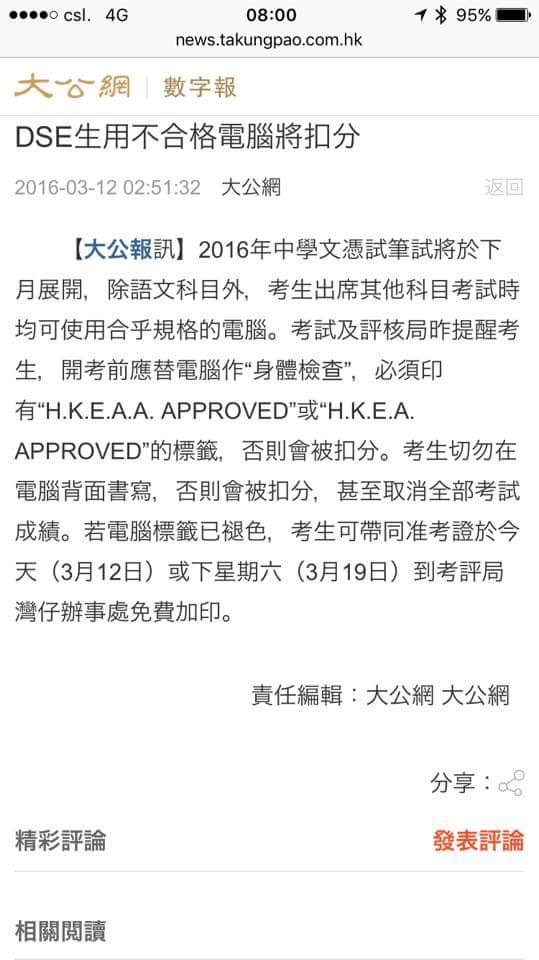 文匯報:DSE生用不合格電腦將扣分