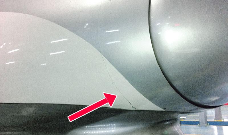 2010年出廠使用的高鐵CRH380A列車,消息人士透露曾於行駛武廣客運專線期間,發現多處車身出現不尋常裂紋,包括在車頭出現一條環狀不規則裂紋(箭嘴示),最終需召回車廠維修。有內地傳媒曾報道,CRH380A自武廣客運專線降速後「再未使用」,但當時未有交代原因。