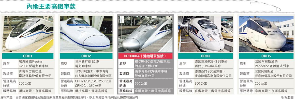港鐵2012年3月以17.4億元向中國南車購入9列CRH380A,翌年港鐵更表示列車於國內完成測試後,首列列車擬於2014年4月付運到港,但因高鐵被揭工程延誤及超支,列車付運到港時間延至今年(見另稿)。