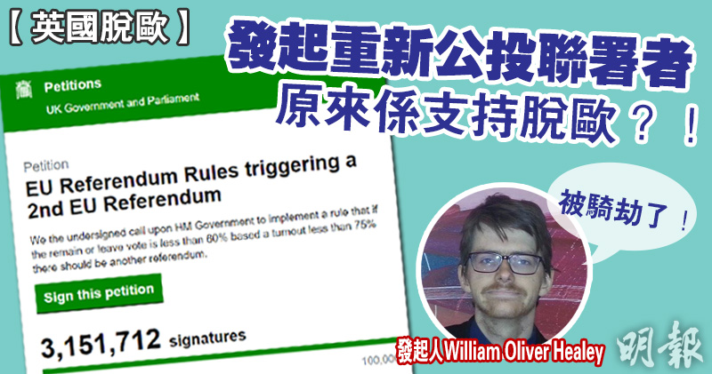【英國脫歐】「重新公投」聯署發起人原來是挺脫歐者 投票前已籲聯署因預料會輸[/size=6][/b]
