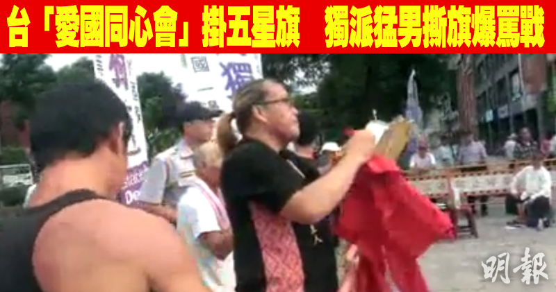 發表文章發起投票【短片】台「愛國同心會」西門町掛五星旗 獨派猛男撕旗爆罵戰 港網民稱「霸氣」【短片】台「愛國同心會」西門町掛五星旗 獨派猛男撕旗爆罵戰 港網民稱「霸氣」[/size=6][/b]台灣統獨爭議未息,統派團體「愛國同心會」以辦活動名義,在台北西門町街頭大量懸掛五星紅旗,不時與附近的獨派團體爆發衝突。台灣網民吳萬福昨天在facebook上載影片,拍下兩名身材健碩的獨派男子,走到同心會的集會區前,徒手撕爛兩面五星紅旗,並扔到同心會集會區。事件令兩派人士掀罵戰,其中一名身穿背心、渾身肌肉的男子回頭指罵同心會陣營人士,幸有鐵馬隔着,現場未有爆發肢體衝突。有台灣網民形容撕旗者是「真男人」、「台灣英雄」,亦有香港網民留言,著「台灣人加油,不要變成香港」。亦有香港網民分享有關短片,讚旗男子「霸氣」。台灣統派團體「愛國同心會」經常舉行親中活動,該會支持「一國兩制、和平統一」。(自由時報)http://m.mingpao.com/ins/instantnews/web_tc/article/20160627/s00004/14670241439461202016/06/28, 7:18:53 早上本貼文共有 0 個回覆此貼文已鎖,將不接受回覆發表文章發起投票