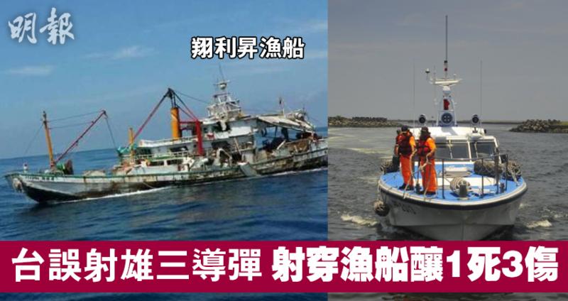 台灣海軍金江艦今早8時許誤射「雄風三型」反艦導彈,國防部證實導彈貫穿高雄籍漁船「翔利昇號」,造成船長黃文忠死亡及3名船員受傷。
