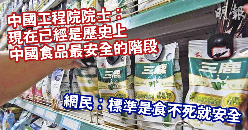 不過,不少中國網民質疑現時食品是歷史上最安全的說法,有人稱可以讓這院士「每天吃一種不安全的食品,保證到死也吃不完」;亦有人稱標準就是「食不死就安全」。不過,亦有網民同意院士的說法,指現在的檢測標準和人們的接受水平都提高了,因此才比以前檢測到更多有問題食品。