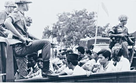 一九六五年,一批印尼共青團成員在耶加達被軍隊押往監獄。