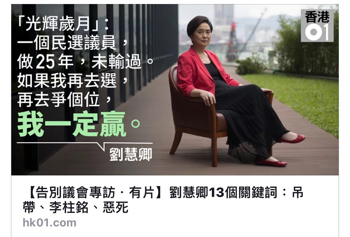 劉慧卿:25年未輸過,如果再去爭個位,我一定贏!