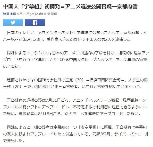 有字幕組首次俾日本個邊捉咗