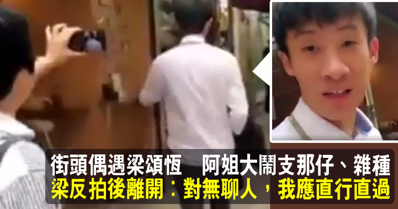 梁其後攤一攤手轉身離開,拍片者及伙伴則繼續從後追着梁叫罵,大喊:「漢奸,你老母係支那生出嚟架」。
