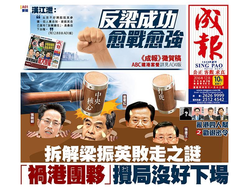 特首梁振英昨天突然宣布不爭取連任,香港社會震撼,民心振奮,因終於重見希望。據筆者了解,中央核心早於兩個月前已定調梁振英難再連任,近日時機適合,為免有人「假傳聖旨」,派出「特使」從北京南下深圳,當面「DQ」(取消資格)梁振英,表明中央不支持他爭取連任。據悉原因有三:一是梁的民望低迷,無把握能取得比上屆更多的689票數,不利管治大局;二是與中聯辦等團團夥夥聽命江派代表人物張德江的「攪亂路線」,為私利,而無視國家及香港整體發展大局;三是最近不斷有營造篤定梁連任的輿論,有挾持中央核心之嫌,不得不快出手表態。在「禍港四人幫」團夥中,率先拿下梁振英,是平穩香港社會大局的第一步。 踏入下午3時30分後,沉鬱的香港氣氛驟現一片歡欣,酒吧食肆生意熱鬧,市民掛上笑臉,最有趣是不少途人走路時會不自覺地偷笑起來,拿着手機奔走通知一個「喜訊」-- 梁振英在傳媒鏡頭下宣布:「我不會參加下一屆行政長官選舉。」這個「喜訊」,我們苦等四年了,但一下子夢想實現,那份虛幻感覺,帶點不實在。很多市民怕自己聽錯,反問朋友:「是真的嗎?」有給梁弄致神經兮兮的市民仍高度戒備,說:「不要掉以輕心,689愛反口,小心他在選委會選舉後,又反口參選。」平時人前人後把梁罵得兇狠的政黨中人,看似忍着笑,說出「惋惜」、「感動」之言,表現出從政者應有的量度,不失風範。 對一般市民來說,梁振英不爭取連任是難以置信,是因中聯辦及「梁粉」屢假傳「聖旨」,營造「梁連任」的氣氛太真;筆者老早已形容「西環寶藥黨」,騙盡不少人。 筆者早預告梁棄連任是下台階 然而,對筆者來說,不感意外。早於前天(8日),筆者已撰文預告梁振英的「結局」。筆者撰寫「亂港四人幫」系列評論逾三個月,獲不少讀者定期追看,日子愈久,市民愈擔心是否無法消除這些惡黑勢力,也有對筆者失去信心,揶揄是「吹水」。或許,大家對國情不大了解,政治布局不是短時間可成事,如下棋,要耐性,小心思考每一步;如武術,出拳要快狼準。今天的國家政治形勢頗複雜,王岐山領導的中紀委早前撰文,曾首次提出一個重要詞彙:「執政安全」,文中點名指周永康、薄熙來及令計劃等嚴重違紀違法案件,警示現在並非「天下太平」,提醒高級幹部不要渾然不覺、麻木不仁,甚至跟着錯誤跑。 可惜,偏偏不少香港政界人士「跟着錯誤跑」,捲入參與「攪局」團夥。為何信心滿滿、自以為連任在望的梁振英在記者面前突然「自己DQ(取消資格)自己」呢?雖然梁振英說是「家庭理由」,要照顧女兒齊昕,不想選舉工程狙擊家人等,但聰明人驟看只是下台階的理由,仿如當年董建華以「腳痛」辭去特首之職一樣。梁振英一家從上任至今早已捲起不少是非,齊昕的健康問題也非這段時間才發生,若怕受狙擊,大可以把女兒及太太送往英國休養,這相信對其選情沒多打撃。所以,梁振英祭出這些理由只是體面話。 不支持「雙曾」之說須審慎研判 有親西環的電視台新聞報道昨天引述「北京權威消息」指出,主管港澳事務的官員不鼓勵財政司司長曾俊華參選特首,也不鼓勵前立法會主席曾鈺成入閘。 這句「主管港澳事務的官員」,可圈可點,說白些,能有此分量的人非張德江莫屬,主張「鬥爭攪局」路線的他,豈會把主張溝通路線的「雙曾」看得上眼!若能明白這個背景,讀者可自行解讀此消息是否代表中央核心的看法呢? 「梁氏信徒」如新聞統籌專員馮煒光、一國兩制研究中心總裁張志剛、「幫港出聲」召集人周融等,天天歌頌「反港獨」有功,又透過親西環及梁營的傳媒,不斷「點紅點綠」,惡言相向,喝令曾俊華不准「衝紅燈」(即未經中央同意下宣布參選)。由中聯辦扶植的香港保衛運動(傅振中領導)更犯下「彌天大罪」,把習近平與梁振英握手照自製成2017年曆在網上瘋傳,暗示受加持,有挾持「習核心」挺梁之意。 據了解,中央核心早於兩個月前已定調不會讓梁振英連任,只是找對時機出手而已。理由很簡單,正如筆者日前的撰文所言:「棄梁」已是中央核心無可避免要下的決定,這是符合民情與民意,試問中央如何說服自己去支持一位民望極低的人連任特首呢?當然,北京不好開腔阻其參選,但人貴自知,梁振英自己宣布「放棄連任」,是最佳下台階。從梁振英本身論,他任內嚴重撕裂社會,部分建制派也不喜,別說取過半數當選的機會,連取提名票入閘也沒把握。從政治忠誠度論,梁與中聯辦主任張曉明關係過於密切,團團夥夥「攪局」,聽命張德江的「攪亂路線」,為私利,無視國家及香港整體大局。 中央核心出手導火線有兩大事件 「禍港四人幫」團夥近日有兩大件事成為導火線:一是故意找來「幫港之聲」這類非主流香港組織,並獲政治局常委第三號人物張德江接見,高調大談「反港獨」,意圖再借「偽港獨」騎劫中央核心,有迫令支持梁振英之嫌。二是在財政司司長曾俊華在立法會拒答被司法覆核的議員提問,引起爭議後,梁振英揚言「不知情」,高調與曾「劃清界線」,明顯與特首應有職責不相符,這些皆令中央核心看得光火。 UGL醜聞難令梁登政協副主席之途 為免再有人「假傳聖旨」,據知今次中央核心從北京派來「特使」南下深圳,當面向梁振英表明中央不會支持梁振英尋求連任。最現實的考慮是在暗票制度下,梁振英未必夠票勝出,即使勝出,也會以低於689票當選,不利未來管治及扭轉惡劣局勢,