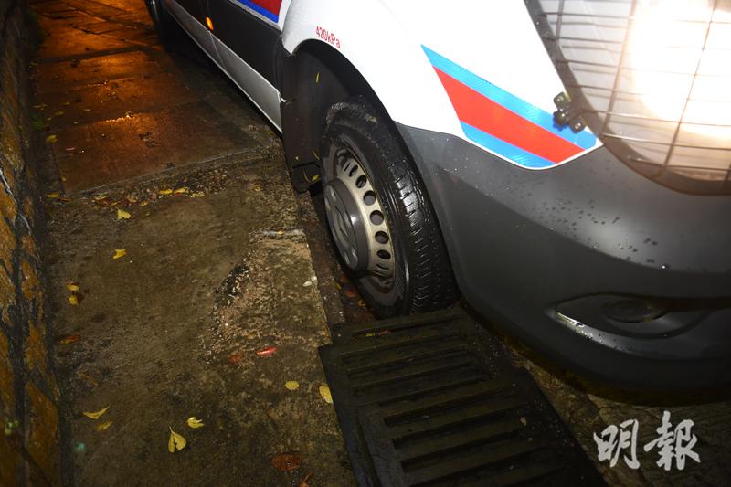 被撞水警七人車車頭損毀,由於車內有一批裝備,遂召另一輛警車到場將其運走。不料當[#ff0314]該警車離開現場,準備越過焚毀的綿羊仔時,右邊車轆意外墜坑及爆胎[/size=6][/#ff0314],拖車其後到場先後將綿羊仔及警車拖走。