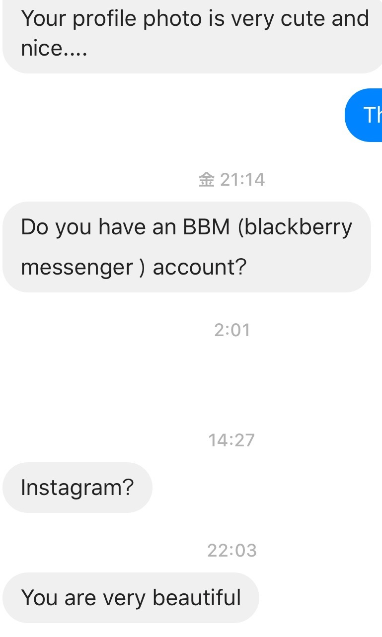 發表文章發起投票 又有啲差仔望到我Facebook icon之後想溝我啦,佢send咗啲message嚟,我應該點覆佢122017/01/07, 10:08:58 晚上本貼文共有 0 個回覆此貼文已鎖,將不接受回覆發表文章發起投票