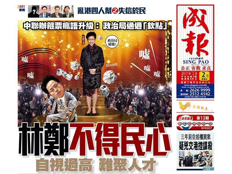 成報 :『林鄭不得民心 自視過高 難聚人才』