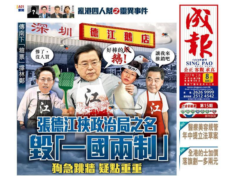 成報 : 『傳南下箍票撐林鄭 張德江挾政治局之名毀一國兩制』