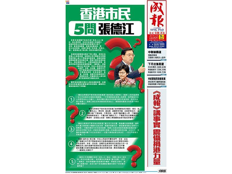 雖然特首選舉只限於1,200名選委投票,但選出來的特首絕對影響香港未來的發展。請張德江回答香港市民下列問題: