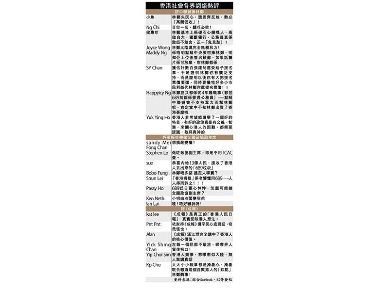 植根英國的林鄭月娥自被張德江相中後,她那靠近張德江權力得勢的嘴臉,與民心愈走愈遠。民意不是靠刻意造勢,筆者最近看過另一位特首參選人曾俊華周日親到馬拉松場地為選手打氣的短片,最深感受是一位又一位參賽的選手,主動走近曾俊華跟他擊掌,拍拍他的肩膊鼓勵,說:「您都要加油!」、「John,我支持您!」、「不要放棄」等等;期間不少人找曾俊華合照,人人掛上笑臉。這些不是用錢、用權可以營造出來,而是用心,用心去感動人,市民產生共鳴,就會無條件的給予支持。試想想:沒聽過有人因為曾俊華的鬍鬚而支持他。所以,那些說不用看政綱就憑信任林鄭的選委,應當反省自己有多麼的膚淺。