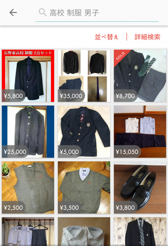 二手買物App「メルカリ」就出現了一大堆校服拍賣品。