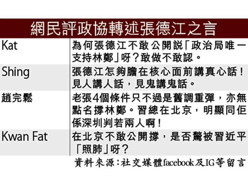 第二,張德江發動所有中聯辦、港澳辦及各省市的統戰部,再配合文宣系統,動用「國家級」資源為林鄭造勢,甚至力陳「政治局唯一支持林鄭」之說,損毀「一國兩制」的權威性。