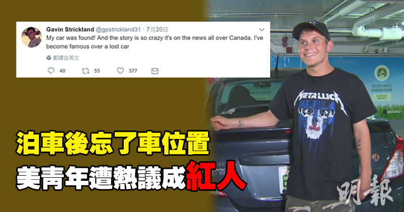該名19歲青年Gavin Strickland,本周日(16日)從雪城駕車到多倫多看演唱會,將車停泊在附近停車場,但事後忘記了停車場的位置。青年花整晚時間在找車,甚至警察也載他在城市四周尋車仍不果,最後他周一(17日)放棄並搭近400公里車回家。他父母在網上刊廣告「尋車」,指糊塗兒子將車停泊在一個地下停車場,卻忘記停車場的位置,並提供汽車的相片及懸賞100美元,希望大家幫忙尋找,引起網民熱烈討論,說要幫他尋車。